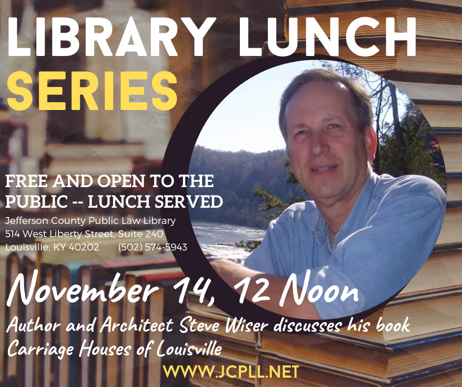 Join us as author Steve Wiser discusses his book Carriage Houses of Louisville. This event is free and open to the public. Lunch will be served. Reservations are not required, but you may RSVP the library at 502-574-5943 for planning purposes.